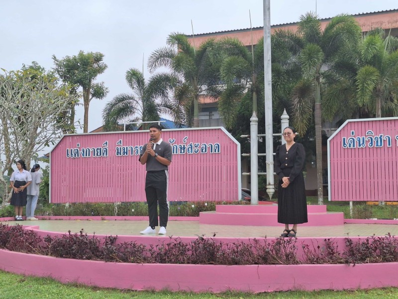 ๑๘ พฤศจิกายน ๒๕๖๘ นายจิรสิน คงชนะ ข้าราชการครูบรรจุใหม่ ตำแหน่งครูพลศึกษา แนะนำตัวอย่างเป์นทางการกับนักเรียน ณ ลานหน้าเสาธง